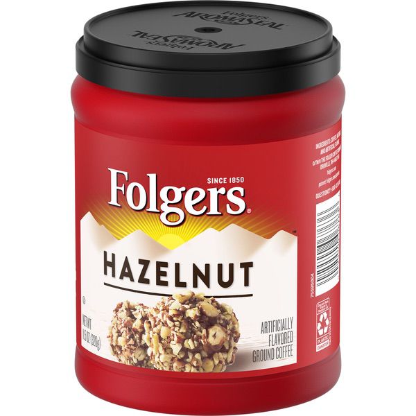 Details Ingredients Coffee, Natural and Artificial Flavor. Product features Flavorful and smooth with a distinctive blend of hazelnut, Folgers Hazelnut Flavored Coffee balances an inviting aroma with a rich, nutty flavor. Founded in San Francisco, Folgers is an iconic American brand with a history as rich as its coffee. For more than 150 years, Folgers has been the “Best Part of Wakin' Up" with its Mountain Grown beans and fresh, eye-opening aroma. Folgers coffee provides you with consistently rich, pure taste, cup after cup. Hazelnut flavored ground coffee with a delicious, nutty aroma 100% pure coffee. Roasted in New Orleans, Louisiana Interlocking AromaSeal canister seals tight to lock in freshness Special Features Flavorful and smooth with a distinctive blend of hazelnut flavor. Artificially flavored. Mountain grown. www.folgers.com. Questions? Comments? 1-800-937-9745. Canisters are recyclable where programs for this package exist.