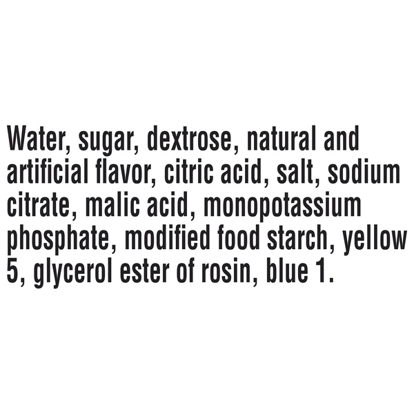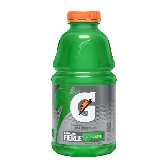 Details Ingredients WATER, SUGAR, DEXTROSE, NATURAL AND ARTIFICIAL FLAVOR, CITRIC ACID, SALT, SODIUM CITRATE, MALIC ACID, MONOPOTASSIUM PHOSPHATE, MODIFIED FOOD STARCH, YELLOW 5, GLYCEROL ESTER OF ROSIN, BLUE 1. Show more Product features Stay in the game with the Gatorade G Series Perform Fierce Green Apple Sports Drink. It's the most scientifically researched and tested way to replace electrolytes lost in sweat. This Gatorade sports drink comes in a 32 oz bottle and replenishes faster than water, which is why it's trusted by some of the world's athletes.Gatorade Green Apple 32 Oz.: Works well to replace lost electrolytesHelpful for playing sportsGatorade green apple drink quickly quenches your thirstMore effective than waterArtificially flavored32 oz bottle Net Quantity of Content ABOUT 2.5 X 12 fl oz