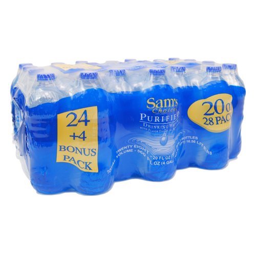 Details Ingredients Purified Water, Magnesium Sulfate, Potassium Bicarbonate, Potassium Chloride. Product features Enjoy fresh water on the go with Sam's Choice Purified Drinking Water (20 fl oz., 28-count). This beverage is sodium-free and contains flavor-enhancing minerals. Take this purified water with you on your next workout and stay hydrated.Sam's Choice Purified Drinking Water: With flavor-enhancing mineralsSam's Choice Water is sodium-free20 oz. bottlesConvenient for on the go Net Quantity of Content 70 X 240 ml