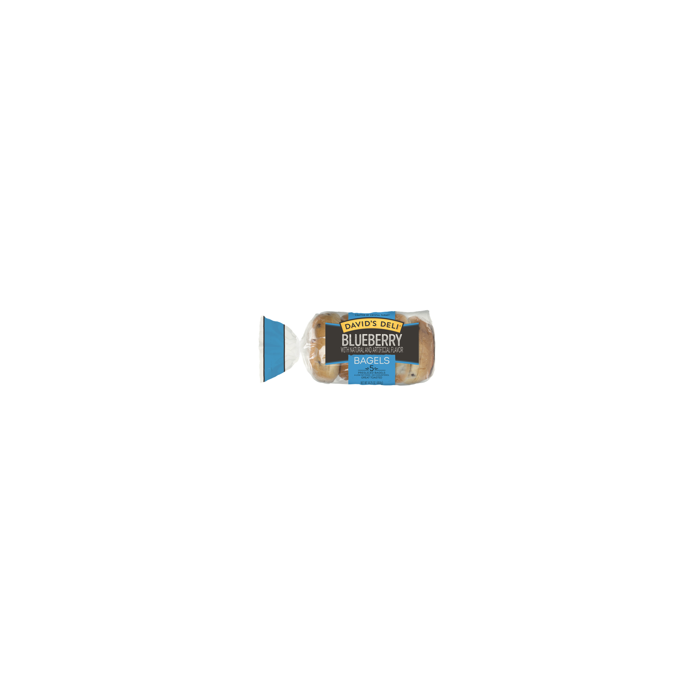 Details Ingredients ENRICHED HIGH GLUTEN FLOUR (WHEAT FLOUR, MALTED BARLEY, NIACIN, REDUCED IRON, THIAMINE MONONITRATE, RIBOFLAVIN, FOLIC ACID), WATER, BLUEBERRY BIT [SUGAR, WHEAT FLOUR, CANOLA OIL, WHEAT STARCH, DEXTROSE, FRUIT JUICE CONCENTRATES (ELDERBERRY JUICE, WATERMELON, HUITO) FOR COLOR, NATURAL FLAVOR, DRIED BLUEBERRIES, AND SODIUM BICARBONATE.], SUGAR, YEAST, SALT, CALCIUM PROPIONATE (PRESERVATIVE), MONO-DIGLYCERIDES, MALT, ENZYME, CORNMEAL. Show more Product features Start your morning off right with David's Deli Blueberry Bagels. They're delicious when you toast them up and spread butter, lox, cream cheese or other toppings over them. David's Deli bagels are thick and chewy and make your breakfast more satisfying. These food products come pre-sliced to save you time. Blueberries mixed into the dough add little bursts of sweetness. This product is low in fat and has no cholesterol, which makes it easy to factor into your well-managed diet plan. David's Deli Blueberry Bagels: Delicious toasted Low fat Cholesterol free Kosher bagels for observant Jewish households Pre-sliced for convenience Special Features Kosher Net Quantity of Content 5 X 81 g