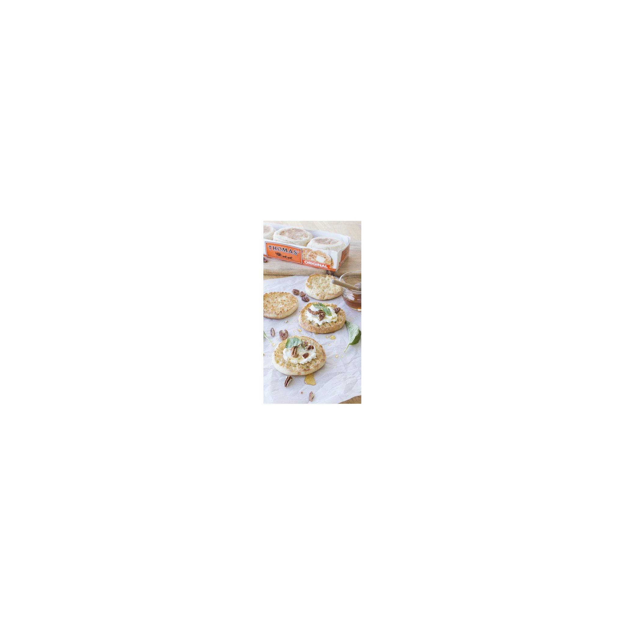 Details Ingredients Enriched Wheat Flour [Flour, Malted Barley Flour, Reduced Iron, Niacin, Thiamin Mononitrate (Vitamin B1), Riboflavin (Vitamin B2), Folic Acid], Water, Farina, Yeast, Salt, Sugar, Calcium Propionate And Sorbic Acid (To Preserve Freshness), Soybean Oil, Wheat Gluten, Grain Vinegar, Soy Lecithin, Soy, Whey. Show more Product features Thomas Original English Muffins have the butter pooling, Nooks & Crannies texture that you love. Simply like no other, theyre crispy on the edges and chewy in the middle with a delicious taste you cant resist. Try them today and be part of a tradition of quality that Thomas has been proudly serving up to families like yours for more than 135 years. Each tray contains 6 fork-split English Muffins Nooks & Crannies texture that toasts up crispy on the edges and soft in the middle Baked with high-quality ingredients Enjoy with your favorite spread (we suggest butter or cream cheese) or as a sandwich, burger, personal pizza and more! Create the perfect breakfast sandwich with sausage, eggs & cheese and a toasted Thomas' English Muffin Special Features No high fructose corn syrup Net Quantity of Content 6.0 X 1 muffin