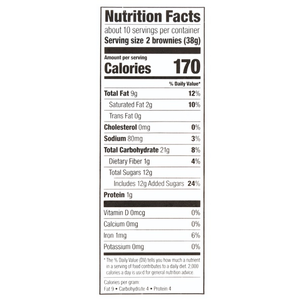 Details Ingredients Sugar, Bleached Enriched Wheat Flour (Wheat Flour, Niacin, Reduced Iron, Thiamine Mononitrate, Riboflavin, Folic Acid), Soybean Oil, Water, Egg White, Corn Syrup, Semi Sweet Chocolate (Sugar, Chocolate Liquor, Cocoa Butter, Soy Lecithin, Vanilla Extract, Cocoa (Processed With Alkali), Vegetable Shortening (Palm Oil, Canola Oil, Modified Palm Oil), Salt, Artificial Vanilla Flavor, Natural Chocolate Flavor, Whey, Modified Cornstarch, Baking Powder (Sodium Acid Pyrophosphate, Sodium Bicarbonate, Cornstarch, Monocalcium Phosphate, Calcium Sulfate), Soy Lecithin, Molasses Show more Product features Treat your taste buds to one of Freshness Guaranteed Brownie Bites. These delicious, bite size brownies are made with rich, fudgy chocolate. Serve them with a glass of ice cold milk or a scoop of creamy vanilla ice cream for an extra fun treat. Wow your child's class mates with these irresistible brownie bites or indulge in a sweet treat any day. They're also the perfect option for office parties, family gatherings, picnics and other events. The container comes with about 20 brownies so there is plenty to share. They come in a reclosable container to help maintain freshness between snacking and for convenience. Satisfy your sweet tooth with Freshness Guaranteed Brownie Bites. Freshness Guaranteed provides you and your family with high quality fresh food that save you time and money, many of which are cooked fresh or prepared in stores. Convenient solutions with value added in every Spark Fresh item. Freshness Guaranteed Brownie Bites, 13.93 oz: Bite size Fudgy, delicious brownies Contains about 20 brownies Reclosable container to help maintain freshness Perfect dessert for barbecues, parties, the office or a sweet treat Net Quantity of Content 10 X 2 brownies (38g)