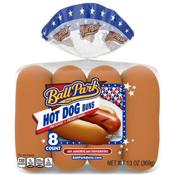Details Ingredients Enriched Wheat Flour [Flour, Malted Barley Flour, Reduced Iron, Niacin, Thiamin Mononitrate (Vitamin B1), Riboflavin (Vitamin B2), Folic Acid], Water, Sugar, Soybean Oil, Yeast, Nonfat Milk, Wheat Gluten, Salt, Cornstarch, Calcium Propionate (Preservative), Datem, Grain Vinegar, Monoglycerides, Corn Flour, Spice & Coloring, Citric Acid, Monocalcium Phosphate, Potassium Iodate, Calcium Sulfate, Soy Lecithin. Show more Product features At Ball Park Buns, we don’t look at the people who buy our products as consumers – we see them as fans. It’s about bringing friends and families together to bond over the things they love, and celebrating the power of food to create powerful experiences. Bring the ballpark home – or take it with you wherever you go. Ball Park makes it easy, with hamburger and hot dog buns that are perfect for grilling, tailgating, parties and more. Our buns and rolls deliver fresh taste and soft texture, Ball Park® Hot Dog Buns take everyday meals to the next level – and always make the crowd go wild. 8 Hot Dog Buns per Pack No High Fructose Corn Syrup & No Artificial Colors or Flavors Perfect for grilling, tailgating, parties & more! Delicious and soft white buns perfect for classic American hot dogs and every day breakfast, lunch and dinner sandwiches! Ball Park's Bun are America's Favorite Buns! Contains Wheat, Soy Made in a Bakery that May Also Use Milk, Tree Nuts Net Quantity of Content 8.0 X 1 bun