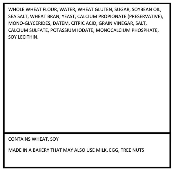 Details Ingredients Whole Wheat Flour, Water, Wheat Gluten, Sugar, Soybean Oil, Sea Salt, Wheat Bran, Yeast, Calcium Propionate (Preservative), Mono Glycerides, Datem, Citric Acid, Grain Vinegar, Salt, Calcium Sulfate, Potassium Iodate, Monocalcium Phosphate, Soy Lecithin. Show more Product features 100% Whole Wheat Sandwich Buns are baked with whole wheat creating a soft yet hearty bun with a delicious taste the compliments all of your favorite burgers and sandwiches. Perfect for a low-key family event, a fun-loving party, or a friendly grill-off between the neighbors. Purchase a pack today! No High Fructose Corn Syrup 5g Fiber per Bun 38g Whole Grains per Bun Special Features No trans fat Net Quantity of Content 8.0 X 1 bun
