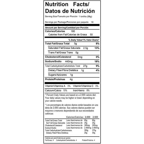 Details Ingredients ENRICHED BLEACHED WHEAT FLOUR (WHEAT FLOUR, NIACIN, REDUCED IRON, THIAMINE MONONITRATE, RIBOFLAVIN, FOLIC ACID), WATER, VEGETABLE SHORTENING (SOYBEAN OIL, HYDROGENATED SOYBEAN OIL, CANOLA OIL), CONTAINS 2% OR LES OF SALT, SUGAR, LEAVENING (SODIUM BICARBONATE, SODIUM ALUMINUM SULFATE, CORNSTARCH, MONOCALCIUM PHOSPHATE AND/OR SODIUM ACID PYROPHOSPHATE, CALCIUM SULFATE), DEXTROSE, MONOGLYCERIDES, ENZYMES, WHEAT STARCH, CALCIUM CHLORIDE, ANTIOXIDANTS (TOCOPHEROLS, ASCORBIC ACID, CITRIC ACID), CELLULOSE GUM, GUAR GUM, DOUGH CONDITIONERS (FUMARIC ACID, SODIUM METABISULFITE AND/OR MONO- AND DIGLYCERIDES), CALCIUM PHOSPHATE AND SORBIC ACID (TO PRESERVE FRESHNESS). Show more Product features We craft our Guerrero Caseras Soft Taco Flour Tortillas with quality ingredients and time-tested cooking techniques, so they will always pair perfectly with your family's traditional Mexican meals. Whether you're making a generations-old taco recipe or trying something new, our tortillas' fluffy texture and authentic flavor will enhance everything you put on the dinner table. And since our flour tortillas are certified kosher and don't contain lard, trans fat, or cholesterol, you can feel good about serving them to your family and friends. We recommend loading our tortillas with homemade picadillo and tomatillo salsa for a spicy and satisfying weeknight dinner. Includes one 10 ct package of Guerrero Caseras Soft Taco Flour Tortillas. One 10 count package of Guerrero Caseras Soft Taco Flour Tortillas Authentic, homemade flavor and soft texture Certified kosher 0g of trans fat per serving No cholesterol or lard Net Quantity of Content 10.0 X 58 g