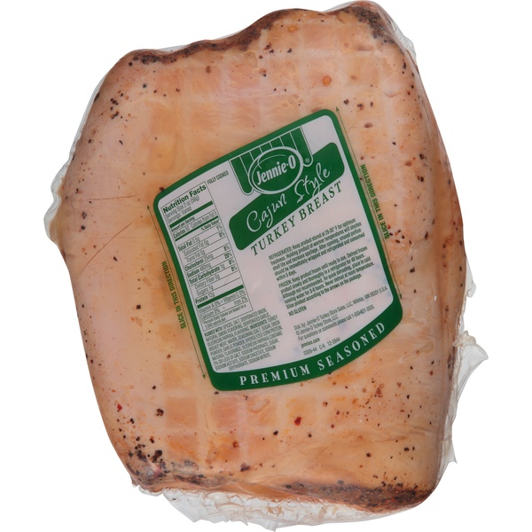 Details Ingredients Rubbed with: Spices, Salt, Dehydrated Onion, Natural Smoke Flavoring, Dehydrated Garlic, Oleoresin of Paprika, Flavoring. Ingredients: Turkey Breast Meat, Water, Seasoning (Salt, Sugar, Onion Powder, Garlic Powder, Hydrolyzed Corn Protein, Natural Flavorings, Oleoresin Paprika), Contains 2% Or Less Salt, Sodium Phosphate, Sugar, Sodium Acetate, Sodium Diacetate, Sodium Erythorbate, Sodium Nitrite. Show more Product features The city of New Orleans meets deli turkey! JENNIE-O® Cajun Style Turkey Breast is seasoned turkey with creole rub and other pre-rubbed spices to give your sandwich or a salad a little more bite. Slice it up for lunch filled with flavor and nutrition. Gluten Free Premium Seasoned Allergy Notice Our stores may use some of the following ingredients: peanuts, eggs, soy, tree nuts, wheat, dairy products, fish, and/or shellfish. Even if these are not listed on the ingredient label, please be aware that all products may have come in contact with these ingredients.
