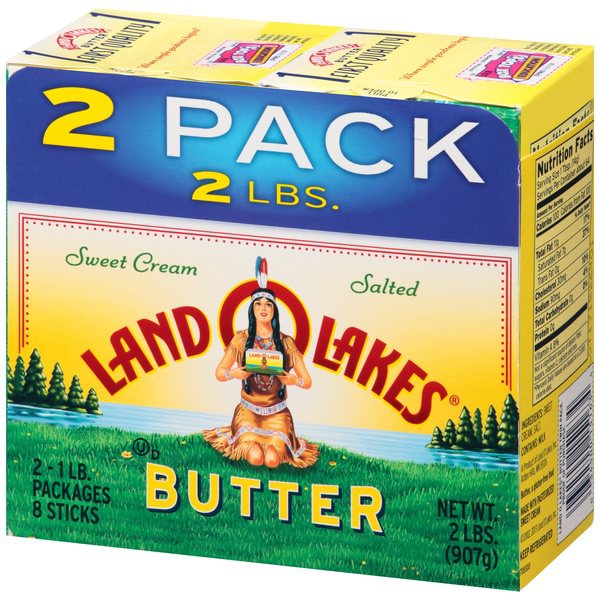 Details Ingredients Ingredients: Sweet Cream, Salt. Contains: Milk. Product features Melted, browned, or clarified, Land O Lakes Salted Butter is the all-purpose butter that improves the taste of everything it touches. It's the original sweet cream butter that never lets your taste buds down. Every stick has the FlavorProtect® Wrapper to protect the fresh dairy flavor you know and love. 1 pound of salted butter in 4 sticks (1/2 cup each) Only two ingredients: sweet cream and salt FlavorProtect® Wrapper that keeps other flavors out and fresh taste in Great for cooking, baking, spreading, and topping From Land O'Lakes, a farmer-owned cooperative since 1921 Net Quantity of Content 64 X 1 Tbsp