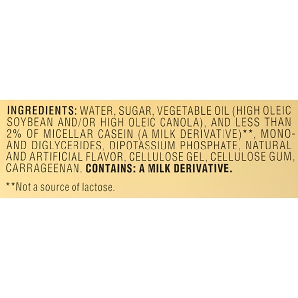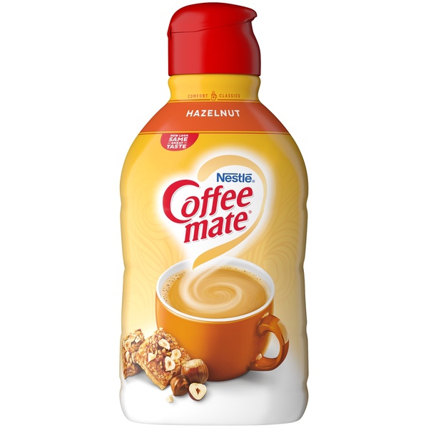 Details Ingredients Water, Sugar, Vegetable Oil (High Oleic Soybean and/or High Oleic Canola), and Less than 2% of Micellar Casein (a Milk Derivative)**, Mono- and Diglycerides, Dipotassium Phosphate, Natural and Artificial Flavor, Cellulose Gel, Cellulose Gum, Carrageenan. **Not a Source of Lactose. Show more Product features Enhance the flavor of your favorite brand of coffee with Nestle Coffeemate Hazelnut Liquid Coffee Creamer. The dual-purpose condiment has a delicious nutty flavor and a creamy texture. It provides an ideal way to add a touch of sweetness and light cream from one container. This hazelnut coffee creamer contains natural and artificial flavors and provides just 35 calories per serving. It's also non-dairy, lactose-, gluten- and cholesterol-free. Stir in Nestle Coffeemate Hazelnut Liquid Coffee Creamer for a classic cup of coffee with just the right amount of flavor, morning, noon or night. Whether you’re sharing with a friend or taking a moment to recharge, the rich, creamy taste provides the ideal flavor to wake up your cup. It's available in a convenient 64-fl oz bottle. Nestle Coffeemate Hazelnut Liquid Coffee Creamer, 64-fl oz Bottle: Rich flavor and creamy texture Hazelnut flavor Liquid coffee creamer Natural and artificial flavors Non-dairy Lactose-free Cholesterol-free Gluten-free Creamer and sweetener in one 35 calories per serving 64-fl oz Coffeemate coffee creamer Try other Coffeemate creamer flavors (sold separately) Net Quantity of Content 126.0 X 1 Tbsp. (15mL)