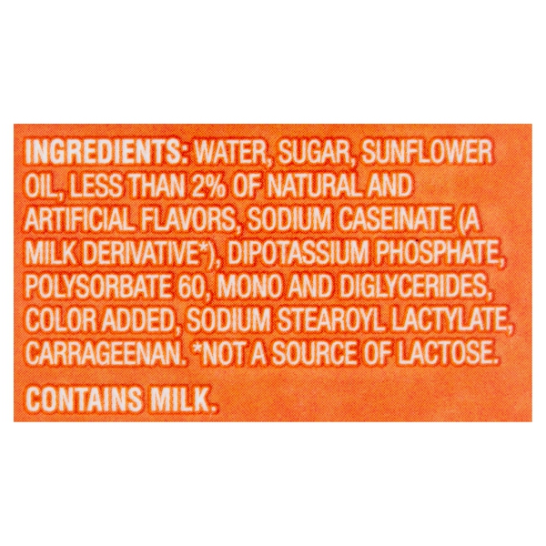 Details Ingredients WATER, SUGAR, SUNFLOWER OIL, LESS THAN 2% OF NATURAL AND ARTIFICIAL FLAVORS, SODIUM CASEINATE (A MILK DERIVATIVE*), DIPOTASSIUM PHOSPHATE, POLYSORBATE 60, MONO AND DIGLYCERIDES, COLOR ADDED, SODIUM STEAROYL LACTYLATE, CARRAGEENAN. Show more Product features Skip the coffee shop and make your morning brew at home with Great Value Hazelnut Coffee Creamer. Our delightful coffee creamer is only 30 tiny calories per serving, making it an excellent choice for the health-conscious consumer and a great alternative to traditional heavy cream. Get creative in the kitchen and swirl our coffee creamer into your next batch of baked fudgy brownies or whip it into whipped cream for a delicious nutty flavor you'll love. Make mornings magical with Great Value Hazelnut Coffee Creamer. Great Value products provide families with affordable, high quality grocery and household consumable options. With our wide range of product categories spanning grocery and household consumables, we offer you a variety of products for your family's needs. Our products are conveniently available online and in Walmart stores nationwide, allowing you to stock up and save money at the same time. Hazelnut coffee creamer Ultra-pasteurized and gluten-free 0g trans fat per serving No cholesterol or lactose 30 calories per serving Kosher dairy 64fl oz container Net Quantity of Content ABOUT 126 X 1 Tbsp