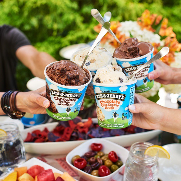Details Ingredients CREAM, SKIM MILK, LIQUID SUGAR (SUGAR, WATER), WATER, WHEAT FLOUR, SUGAR, BROWN SUGAR, EGG YOLKS, BUTTER (CREAM, SALT), EXPELLER PRESSED SOYBEAN OIL, EGGS, COCONUT OIL, CHOCOLATE LIQUOR, VANILLA EXTRACT, COCOA (PROCESSED WITH ALKALI), COCOA POWDER, SALT, MOLASSES, GUAR GUM, COCOA BUTTER, NATURAL FLAVOR, CARRAGEENAN, MILK FAT, SOY LECITHIN. Show more Product features Big delicious chunks of chocolate chip cookie dough surrounded by creamy vanilla ice cream. It seems like such a no-brainer today, but in 1984 it was revolutionary. The Cookie Dough you know and love started with a simple suggestion: What if you put chunks of chocolate chip cookie dough into vanilla ice cream? That was the amazing anonymous idea submitted way back in the early days of our first Burlington, Vermont, USA, Scoop Shop. We used to have a bulletin board where people could suggest new flavours for Jerry and Ben to make—and this idea stood out. The folks at the Scoop Shop immediately went to work mixing up a batch of Cookie Dough. It was an instant hit. Initially, the flavour was only available at the Scoop Shop. When we decided to sell it in tubs, we had to figure out how to get that familiar cookie-dough taste, consistency and texture at ice cream temperatures. We teamed up with Rhino Foods and, over an incredible six-year journey, we perfected the cookie dough found in our tubs today. In 1991, Cookie Dough began appearing in freezer aisles everywhere. It has remained one of our most popular and beloved flavours ever since! We get our cocoa, sugar and vanilla from Fairtrade certified producers, while Caring Dairy farmers provide all the milk and cream in this tub. Ben & Jerry’s ice cream is made with non-GMO sourced ingredients and cage-free eggs. We also use responsibly sourced packaging. Ben & Jerry's Ice Cream Chocolate Chip Cookie Dough 16 oz Ben & Jerry's Chocolate Chip Cookie Dough ice cream pint Vanilla ice cream with gobs of chocolate chip cookie dough All of Ben & Jerry’s ice cream is made with non-GMO sourced ingredients & cage-free eggs Includes Fairtrade certified cocoa, sugar, and vanilla Kosher certified dairy Ben & Jerry’s uses responsibly sourced packaging Special Features No Net Quantity of Content 3 X 2/3 cup