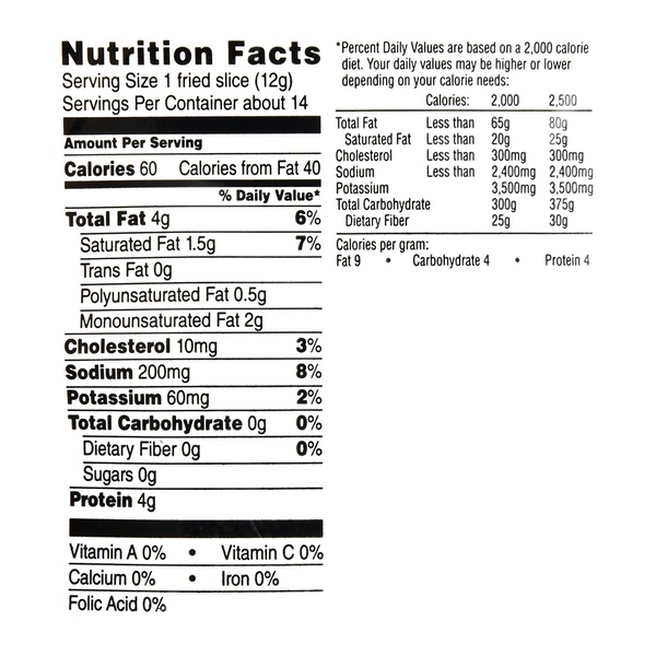 Details Ingredients Pork Cured with: Water, Salt, Sugar, Sodium Phosphates, Sodium Erythorbate, Sodium Nitrite. Product features Great Value Applewood Smoked Bacon is all natural bacon cured with a perfect balance of salt and sugar and smoked over Applewood chips. This natural fresh pork bacon has a distinct robust flavor. Whether you like your bacon extra crispy or a bit soft, this all natural Applewood Smoked Bacon is sure to satisfy your taste buds. It makes a great addition to the breakfast table. Serve with a side of eggs and fruit for a wholesome breakfast. You can also add this bacon to juicy burgers, tasty sandwiches or your other favorite homemade meals. Add some flavor to your day with Great Value Applewood Smoked Bacon.Great Value products provide families with affordable, high-quality grocery and household consumable options. With our wide range of product categories spanning grocery and household consumables, we offer you a variety of products for your family's needs. Our products are conveniently available online and in Walmart stores nationwide, allowing you to stock up and save money at the same time. Great Value Bacon, Applewood Smoked, 16 oz:USDA InspectedApplewood smokedGreat addition to the breakfast tablePerfect for burgers, sandwiches and other recipes Net Quantity of Content ABOUT 8 X 17 g