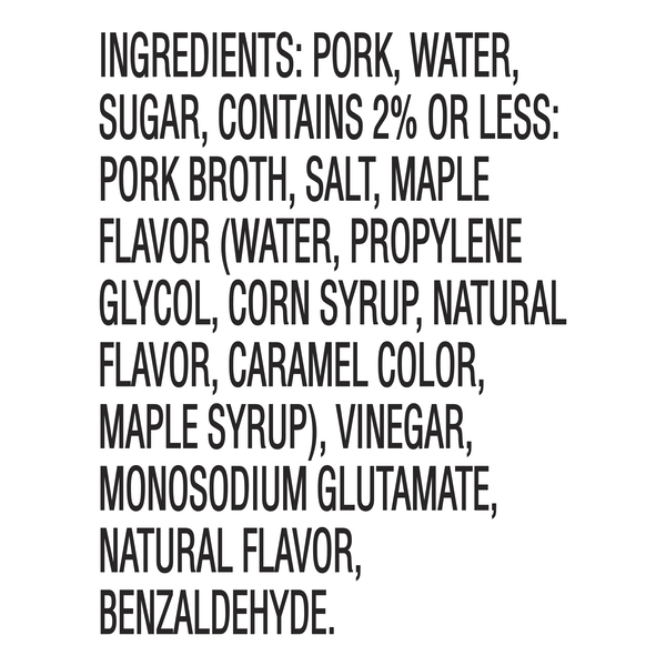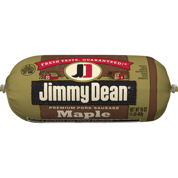 Details Ingredients PORK, WATER, CONTAINS 2% OR LESS: SUGAR, SALT, DEXTROSE, MAPLE FLAVOR (WATER, PROPYLENE GLYCOL, CORN SYRUP, NATURAL FLAVOR, CARAMEL COLOR, MAPLE SYRUP), MONOSODIUM GLUTAMATE, NATURAL FLAVOR, BENZALDEHYDE. Show more Product features Make your morning even sweeter with Jimmy Dean® Maple Sausage. Made with premium pork, seasoned to perfection with our signature blend of spices and a touch of maple, this sweet and savory sausage has 10 grams of protein per serving to give you more fuel to power your day. Simply cook and serve with eggs and toast for a traditional breakfast or with pancakes and maple syrup for brunch. Includes one 16 ounce fresh sausage roll. Use or freeze within 7 days of opening. Can breakfast sausage make the world a brighter place? At Jimmy Dean®, we believe that when you have a good breakfast, you have a good day. And when you have a good day, you pass that shine onto others. To us, the sun is always shining in the morning. So let's do it. Let's make the world a better place, one breakfast at a time. One 16 oz. fresh sausage rollMaple Sausage made with premium porkSeasoned to perfection with our signature blend of spices and mapleGood source of protein - 10 grams per servingSimply cut into slices, cook, and serveDelicious addition to any mealCook and serve with eggs and toast for a traditional breakfast or with pancakes and maple syrup for brunch Special Features Fresh taste Net Quantity of Content 6 X 2 oz