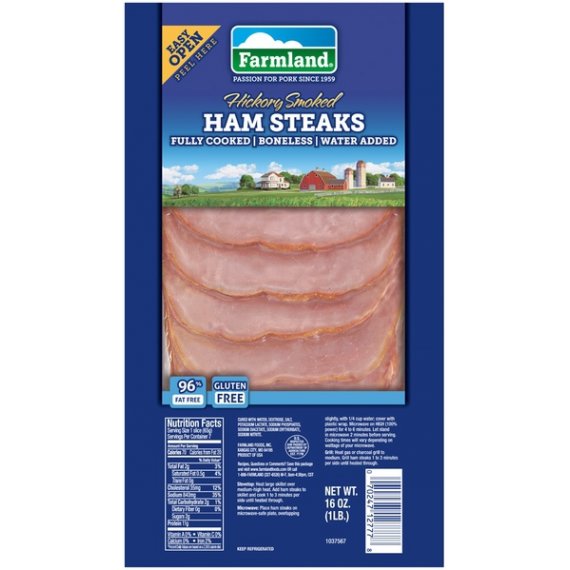 Farmland Hickory Smoked Ham Steaks, 96% Fat Free, Gluten Free, Fully Cooked, Boneless, 16 Ounces