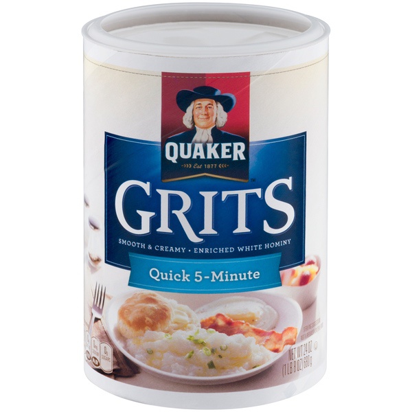 Details Ingredients White Hominy Grits Made from Corn, Niacin*, Reduced Iron, Thiamin Mononitrate*, Riboflavin*, Folic Acid* *One of the B Vitamins. Product features Quaker Original Quick Grits cook in just 5 minutes. We know you want to give your family the very best, and a warm bowl of Quaker Grits gives them a delicious start. Breakfast is a time-honored tradition, so don't forget the grits! Cooks in 5 minutes. A great way to start the morning! Special Features Smooth And creamy Net Quantity of Content 17 X 41g