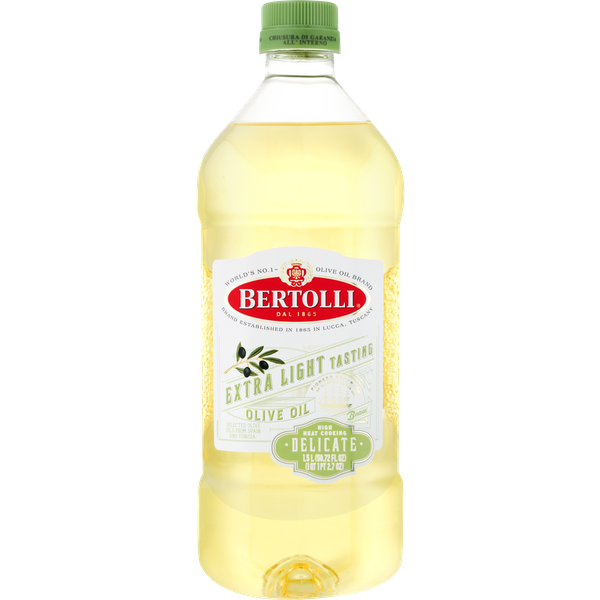 Details Ingredients Olive Oil - Composed of refined Olive Oil and Virgin Olive Oil Product features Enhance the flavor of your favorite recipes with the 51 oz bottle of Bertolli Oil Delicate and Mild Extra-Light Olive Oil. This product is just the right substitute for butter, shortening and other vegetable oils. It is suited for those seeking the healthy benefits of olive oil with a hint-of-olive taste. Because this product has a very high smoke point of 468 degrees Fahrenheit, it is well-suited for high-heat cooking styles, such as frying, sauteing and even baking. You can use Bertolli Olive Oil to make incredibly moist and smooth cakes, brownies, breads, muffins and other oven-prepared goods. Since 1865, this brand has been imported from Italy, which means it is a product with tradition and quality. Bertolli Oil Extra Light Delicate & Mild Olive Oil, 51 oz: Delicate and mild olive oil Super value size Imported from Italy since 1865 Bertolli Olive Oil is a healthy substitute for shortening, butter and other types of vegetable oils High smoke point at 468F Suited for high-heat cooking, like sauteing, frying and baking Can also be used to add smoothness and moisture to brownies, cakes, muffins and breads Non-GMO Project verified Olives are not produced using biotechnology All the goodness of olive oil with just a hint of olive flavor Special Features Extra light Net Quantity of Content 102 X 15 mL