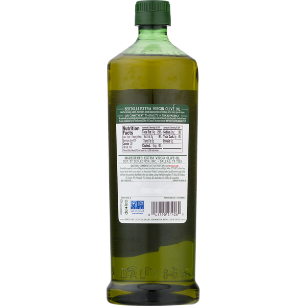 Details Ingredients Extra Virgin Olive Oil Product features Extra Virgin Olive Oil Bertolli Extra Virgin olive oil has a full-bodied flavor for those who desire the highest quality olive oil and appreciate the rich taste and aroma of olives. It is ideal for dressings, salads, marinades, bread dipping and as a finishing oil for every type of cuisine. Product Features First cold pressing Rich taste Best for dressings, marinades, dips Kosher Packing - Recyclable PETE - 1 BertolliOliveOil.com Special Features Rich taste Net Quantity of Content 50 X 15 mL