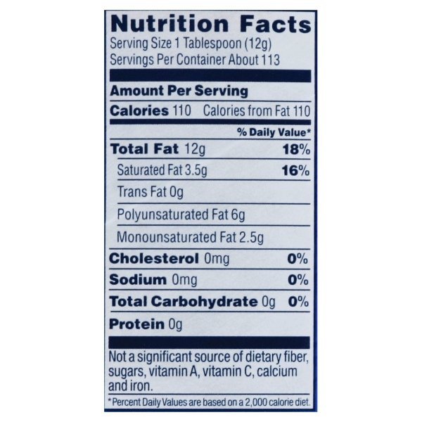 Details Ingredients Soybean Oil, Fully Hydrogenated Palm Oil, Palm Oil, Mono And Diglycerides, TBHQ And Citric Acid (Antioxidants). Product features With 50% less saturated fat than butter and 0g of trans fats per serving, Crisco All-Vegetable Shortening is great for baking and frying. 50% less saturated fat than butter 0g trans fat per serving Use instead of margarine All-vegetable shortening Special Features No trans fat Net Quantity of Content 113.0 X 12.0