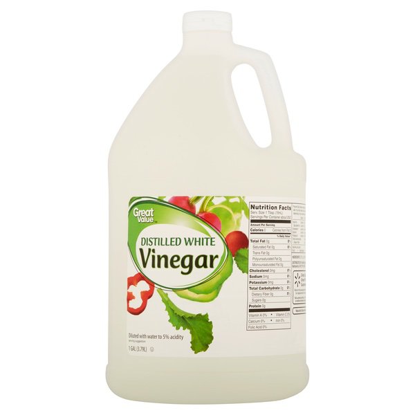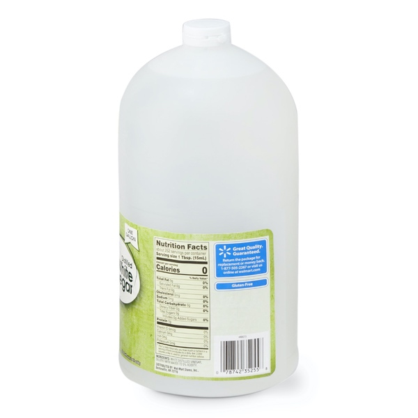 Details Ingredients Distilled white vinegar Product features Great Value Distilled White Vinegar is a versatile kitchen ingredient. It's suitable for creating salad dressings, cooking with meats, cleaning various surfaces and more. Mix your favorite essential oils to create a natural all-purpose cleaner that smells great. Distilled with water to 5 percent acidity, and it can even be used as a deodorizer. Great Value white vinegar has no artificial flavors or colors. It's also naturally gluten-free and kosher. The one-gallon bottle contains plenty to keep your home stocked with vinegar. Experience all the versatile uses of Great Value Distilled White Vinegar today. Great Value products provide families with affordable, high-quality grocery and household consumable options. With our wide range of product categories spanning grocery and household consumables, we offer you a variety of products for your family's needs. Our products are conveniently available online and in Walmart stores nationwide, allowing you to stock up and save money at the same time. Great Value Distilled White Vinegar, 1 gal: Distilled with water to 5% acidity No artificial flavors or colors Naturally gluten-free food Kosher Versatile kitchen ingredient Use for cooking, cleaning and more Gluten-free white vinegar comes in a 1 gallon size for convenience Suitable for integrating into your own salad dressings, marinades and more Special Features Distilled Net Quantity of Content 252 X 1 Tbsp
