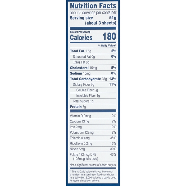 Details Ingredients SEMOLINA (WHEAT), DURUM WHEAT FLOUR, EGGS, NIACIN, IRON (FERROUS LACTATE), THIAMINE MONONITRATE, RIBOFLAVIN, FOLIC ACID. Show more Product features At Barilla, we're passionate about pasta. After all, we have been pasta makers since 1877. As an Italian family-owned food company, Barilla pasta is synonymous with high quality and "al dente" perfection every time. No boiling is needed for Barilla® Oven-Ready Lasagna. Simply add it directly to your favorite lasagne dish and bake! Our wide pasta sheets with rippled edges are designed to hold all your favorite ingredients in each lasagne layer. Oven-Ready Lasagne has a porous, light texture that allows the pasta sheet to absorb the maximum flavor of its sauce. The same great taste you expect from Barilla is in our Oven-Ready Lasagne. No boiling necessary - simply add it directly to your pan and bake. Save time in the kitchen and more time with your guests. Rolled flat, then cut into individual sheets, this keeps the pasta dough light and fluffy. Crafted with the highest quality durum wheat and eggs, for a perfect "al dente" texture and delicious flavor. Try Oven-Ready Lasagne with meat-based sauces like traditional Bolognese, dairy-based sauces like a classic béchamel, and vegetable-based sauces. Special Features Enriched Net Quantity of Content ABOUT 5 X 51 g