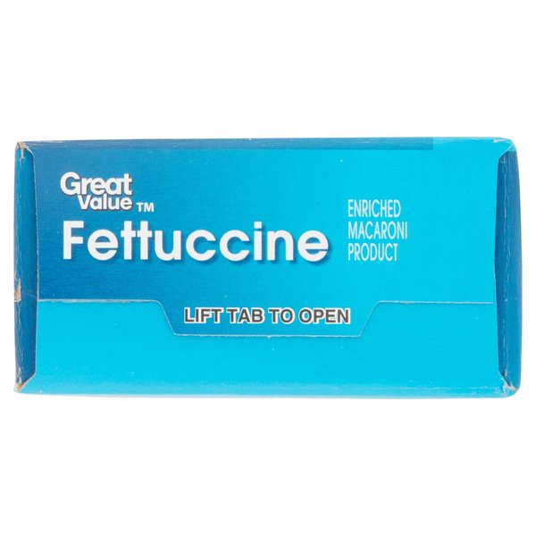 Details Ingredients SEMOLINA, NIACIN, FERROUS SULFATE (IRON), THIAMINE MONONITRATE, RIBOFLAVIN, FOLIC ACID. Product features Enriched spaghetti product. No artificial flavors or colors. Kosher. Warnings: Contains Wheat. May Contain Traces Of Eggs. Ingredients: Durum Semolina, Niacin, Ferrous Sulfate (Iron), Thiamine Mononitrate, Riboflavin, Folic Acid. Great Value Fettuccine, 16 Oz Special Features Fettuccini Net Quantity of Content 8 X 2 oz
