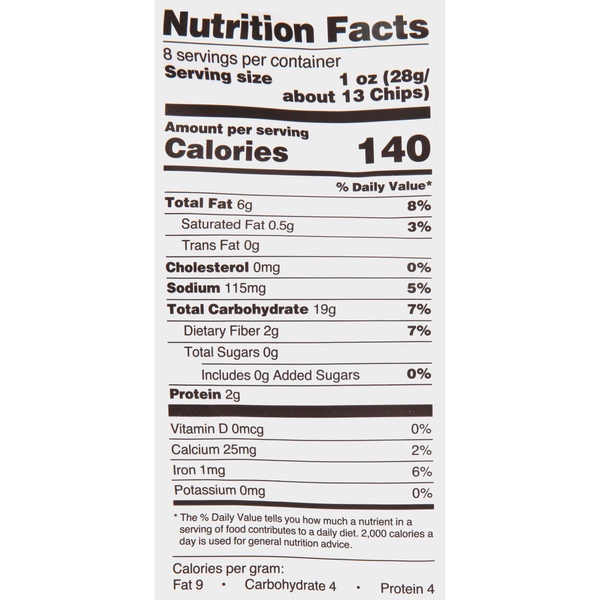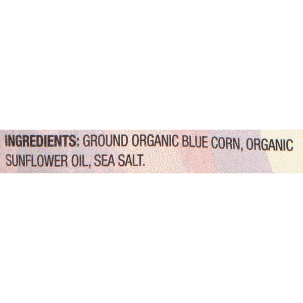 Details Ingredients Ground Organic Blue Corn, Organic Sunflower Oil, Sea Salt. Product features Great Value Organic Blue Corn Tortilla Chips are made from organic blue corn, organic sunflower oil and sea salt. These restaurant quality chips pair well with guacamole, cheese dips, salsa and other favorite dips. Add them to chicken tortilla soup for a satisfying crunch. Use them to make gourmet nachos and top with shredded cheese, lettuce, tomatoes, green onions, olives and garnish with dried parsley. Great for individuals who are sensitive to gluten as these chips are gluten-free. Add a wholesome touch to your next fiesta with Great Value Organic Blue Corn Tortilla Chips.Great Value products provide families with affordable, high quality grocery and household consumable options. With our wide range of product categories spanning grocery and household consumables, we offer you a variety of products for your family's needs. Our products are conveniently available online and in Walmart stores nationwide, allowing you to stock up and save money at the same time. Great Value Organic Blue Corn Tortilla Chips, 8 ozMade from organic blue corn, organic sunflower oil and sea saltUSDA organicGluten-freeGreat for dipping in guacamole, cheese dips and salsaNo artificial flavors or preservatives