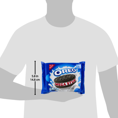 Details Ingredients Sugar, Unbleached Enriched Flour (Wheat Flour, Niacin, Reduced Iron, Thiamine Mononitrate {Vitamin B1}, Riboflavin {Vitamin B2}, Folic Acid), Palm and/or Canola Oil, Dextrose, Cocoa (Processed with Alkali), High Fructose Corn Syrup, Leavening (Baking Soda and/or Calcium Phosphate), Salt, Soy Lecithin, Chocolate, Artificial Flavor. Show more Product features Enjoy a different kind of snack with these Nabisco Oreo Mega Stuf Sandwich Cookies. With thick, rich and creamy centers, they provide a tasty treat that really satisfies your sweet tooth. These Nabisco sandwich cookies come in a resealable pack to keep them fresh after opening. They are low in sodium and suitable for a kosher diet. They also contain only 180 calories per serving, making them suitable for most diets. Add Oreos to your favorite dessert recipes, such as in milkshakes or to decorate cakes. They taste incredible on their own or dunked in milk. Reward yourself with a savory treat with these Oreo Mega Stuf chocolate cookies. Nabisco Oreo Mega Stuf Chocolate Sandwich Cookies:Low sodiumPackage contains 13.2 oz of kosher Oreo cookiesOreo chocolate sandwich cookies contain wheat and soyResealable pack ensures freshness after openingIdeal anytime snack and coffee break companionAdd to your favorite dessert recipesOreo Mega Stuf chocolate cookies have extra frosting for a creamier texture180 calories per servingNo trans fatNo cholesterol Net Quantity of Content 10.0 X 2 Cookies (36g)