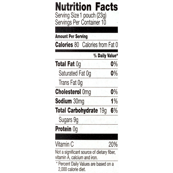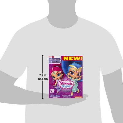 Details Ingredients Corn Syrup, Modified Corn Starch, Apple Juice Concentrate. Contains 2% or less of: Citric Acid, Fruit Pectin, Sodium Citrate, Malic Acid, Dextrose, Vitamin C (Ascorbic Acid), Sunflower Oil†, Color (Vegetable Juice, Spirulina Extract, Fruit Juice, Annatto Extract, and Turmeric Extract), Natural Flavor, Carnauba Wax.†Adds a Trivial Amount of Fat. Show more Product features Kids of all ages will love these naturally flavored, gluten free gummy treats. No artificial flavors or colors, just 80 calories and fat free. They're also an excellent source of vitamin C. New! Betty Crocker Shimmer & Shine Fruit Flavored Snacks 10ct carton. Assorted Fruit Flavors Naturally Flavored. No Artificial Flavors; No Colors From Artificial Sources; Natural Flavors; Excellent Source of Vitamin C; 80 Calories; Gluten Free; Fat Free Betty Crocker shimmer and shine fruit flavored snacks 10ct carton are a fruit flavored gummy treat in fun shapes and flavors Made with no artificial flavors or preservatives Contains an excellent source of Vitamin C Perfect for lunchboxes or snack time Delicious option for kids and a portable grab and go treat Shimmer and Shine™ Fruit Flavored Snacks.New!. No artificial flavors. No colors from artificial sources. Assorted fruit flavors. Naturally flavored. Per pouch: 80 Calories. 0g Sat fat, 0% DV. 30mg Sodium, 1% DV. 9g Sugars. 10 - 0.8 oz (22.6g) pouches. Net Wt 8 oz (226 g). Net Quantity of Content 10 X 1.0