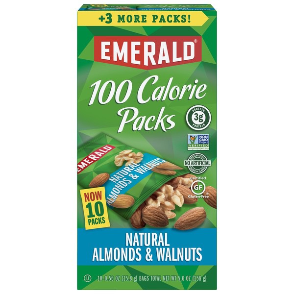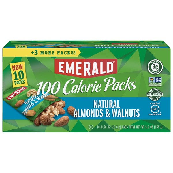 Emerald Nuts Natural Walnuts and Almonds, 100 Calorie Packs, 10 Ct